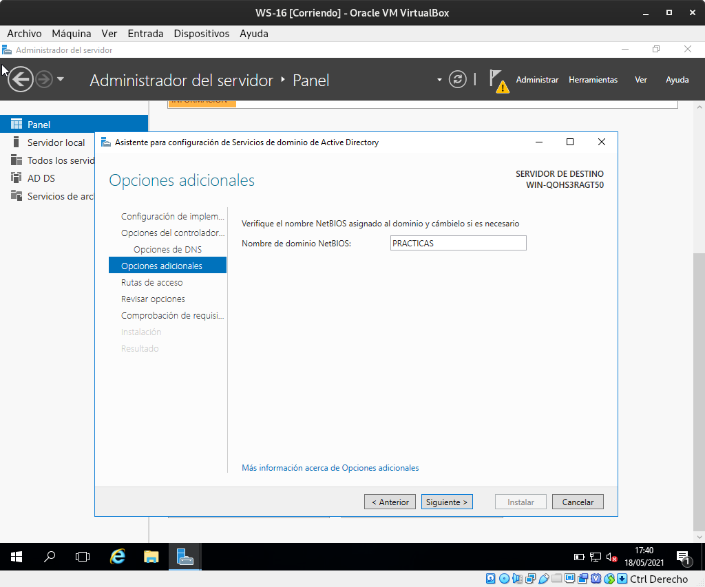 - Hacemos clic en siguiente, y veremos el nombre de NETBIOS asignado por el sistema, nosotros decidimos si lo cambiamos o dejamos ése por defecto.